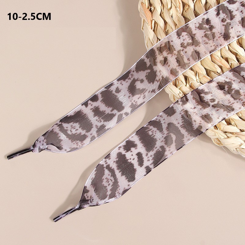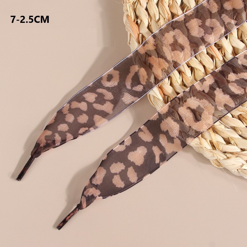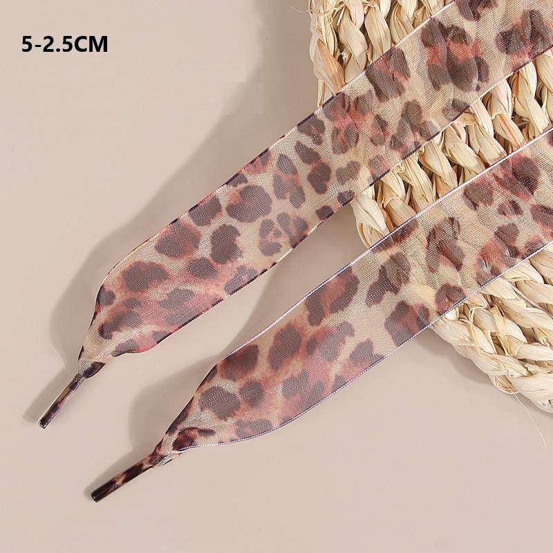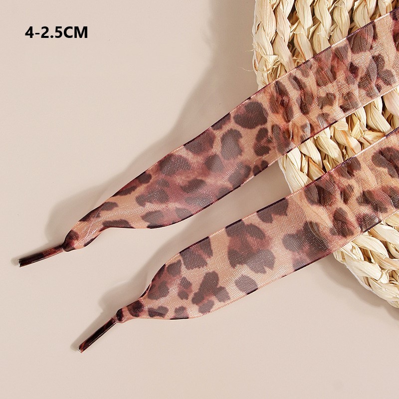 Upgrade your shoe game with these stunning widened leopard print ribbon laces! Crafted from premium snow yarn that feels like silk against your fingers, these flat-woven laces come in multiple widths (2.5cm-4cm) to fit various footwear styles. The trendy leopard pattern adds instant edge to boots, platform sneakers, or casual shoes. Made with durability in mind, these ribbon laces maintain their shape and vibrant print while adding that perfect fashion-forward touch. Whether you're dressing up everyday sneakers or making a statement with boots, these laces deliver both style and substance.